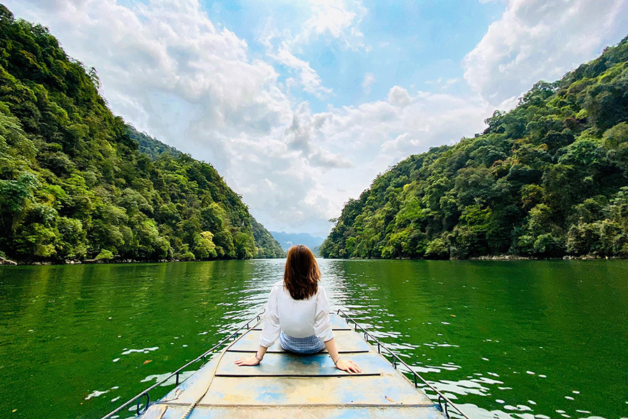 14h00: Đến bến Buốc Lốm, hồ Ba Bể. Thăm quan hồ Ba Bể bằng thuyền với những cảnh điểm đặc sắc như: Động Puông, Ao Tiên, đảo An Mạ, đảo Bà Góa...