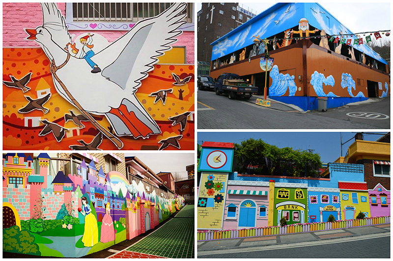 Làng bích họa Songwol-dong Incheon - là địa điểm cho những ai yêu thích nghệ thuật với những bức tường được trang trí bởi nghệ thuật vẽ tường 3D vô cùng sống động.