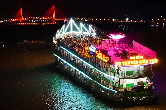 Tối: Qúy khách tự túc ăn tối. Qúy khách có thể trải nghiệm ăn tối trên Du Thuyền Cần Thơ vừa được thưởng thức món ăn ngon , vừa được đi một vòng ngắm Cần Thơ về đêm. Sau đó, đoàn tự do đi dạo quanh Chợ đêm Tây Đô nhộn nhịp nằm ngay bến Ninh Kiều, thưởng ngoạn cảnh đẹp bến Ninh Kiều về đêm, hay mua sắm ở chợ đêm (Chi phí tự túc).