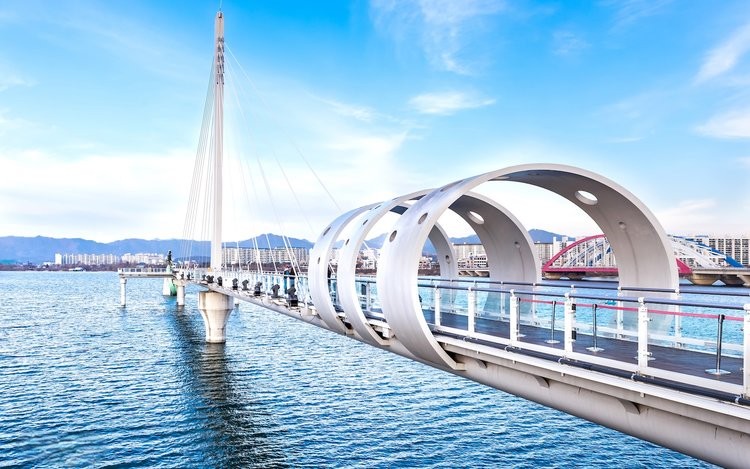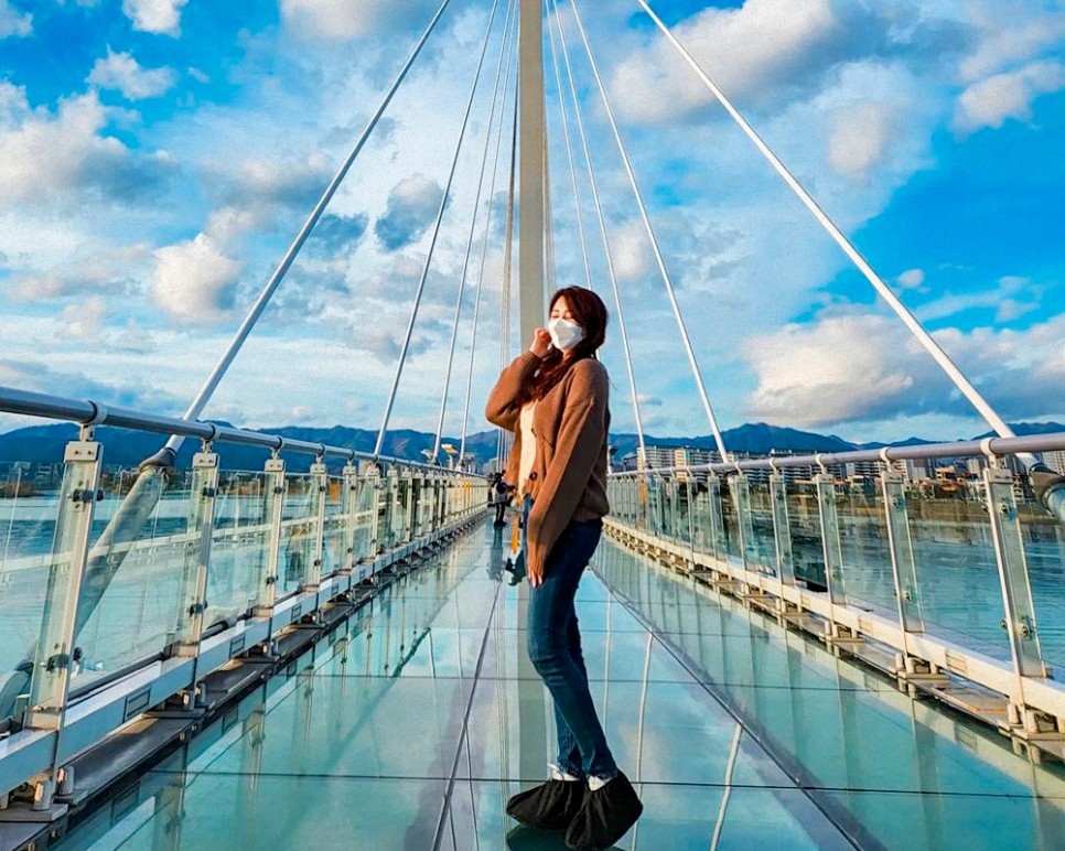 Soyanggang Skywalk - cầu kính nổi tiếng với tầm nhìn ngoạn mục ra sông và núi non xung quanh.