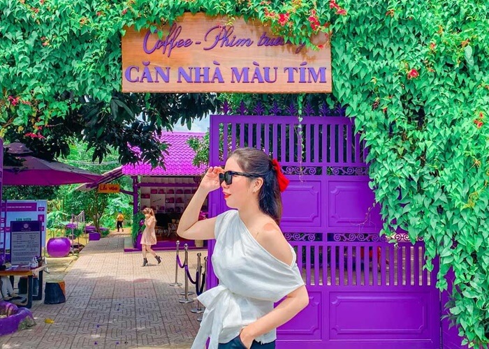 Căn Nhà Màu Tím - vương quốc màu tím với hàng loạt góc chụp ảnh, xe đạp tím, xích đu tím, giàn hoa tím khoe sắc và ngôi nhà nổi bật giữa khung cảnh miệt vườn sông nước. (Gởi tặng mỗi khách một ly nước tự chọn)