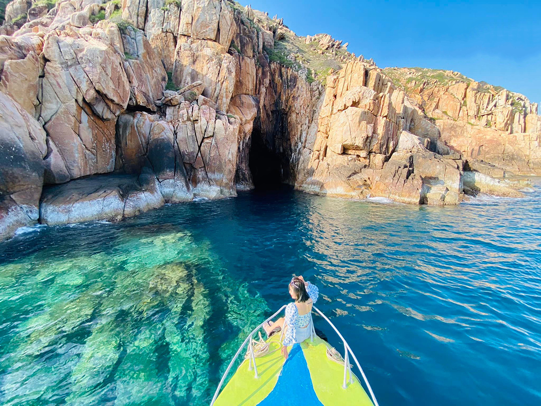 Tham quan bãi Chuối, Hang Sâu, Đá Vách. Tại đây, Quý khách có cơ hội “check-in thả ga” với background vịnh Đá Vách cao đến 40-50m nổi bật giữa biển xanh thăm thẳm và khám phá hệ thống Hang Sâu đầy bí ẩn, nơi ẩn chứa nhiều tích truyện kỳ ảo, thú vị.