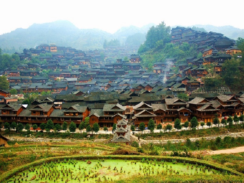 THIÊN HỘ MIÊU TRẠI - Làng miêu lớn nhất của Trung Quốc. Tham quan kiến trúc dân tộc nguyên thủy, quần thể nhà sàn, ruộng bậc thang bản Miêu, đi sâu vào bản Mèo, đi khắp nhà, tìm hiểu cuộc sống và phong tục tập quán của người Mèo.